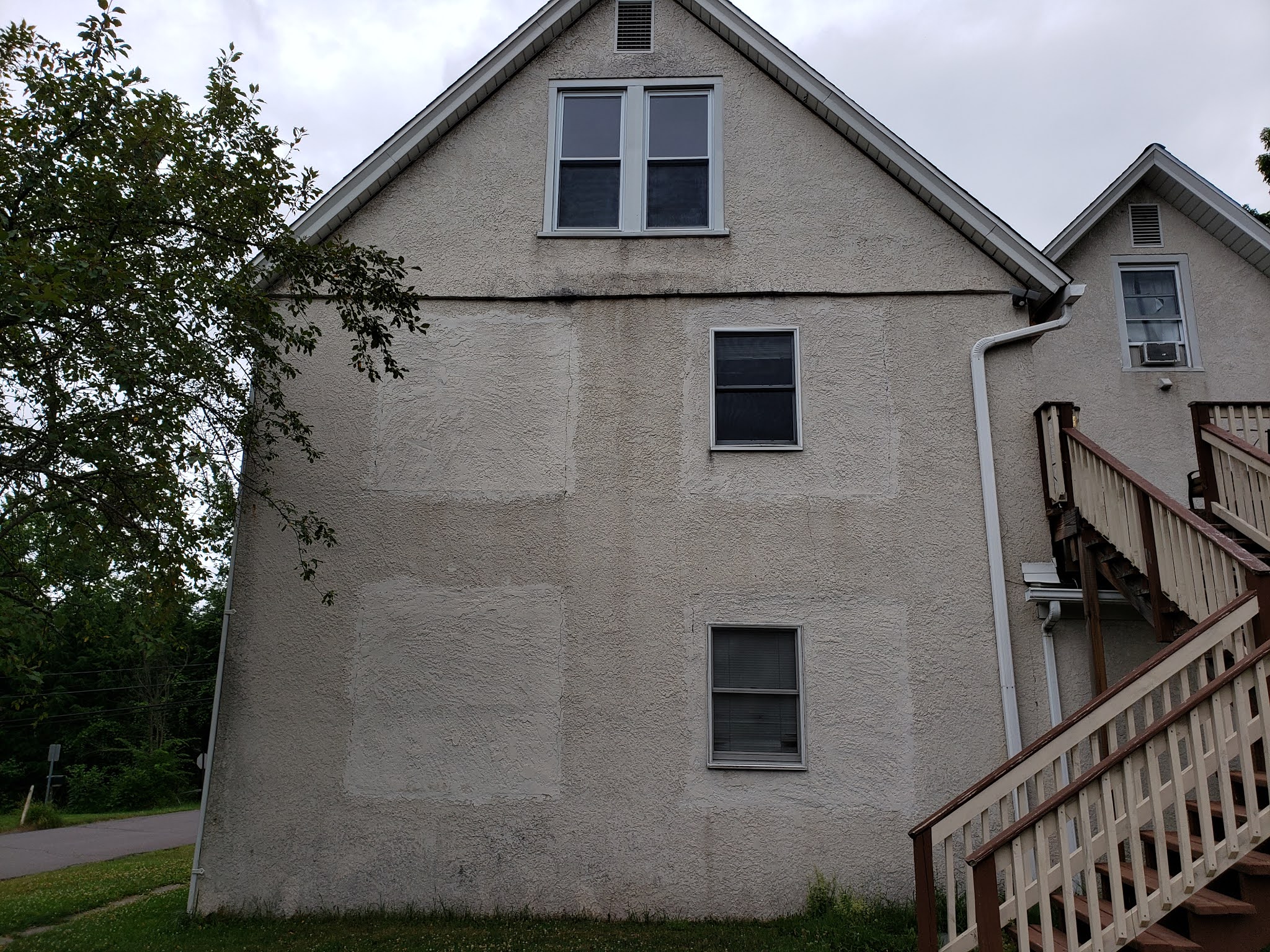 Or you get rid of the couch on the wrap-around porch and clean it up to make a nice place to sit on cooler mornings or evenings, and then you fall through the ancient tongue and groove wooden boards.
